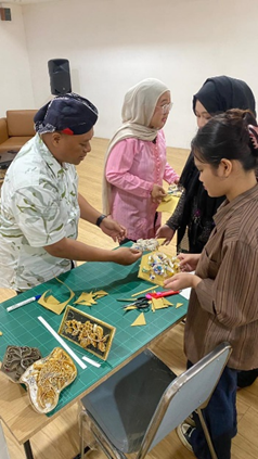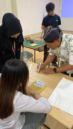 Pada kegiatan ini ISI Yogyakarta yang diwakilkan oleh Dr. Arif Suharson, S.Sn., M.Sn. bersama mahasiswa Jurusan Kriya, Prodi S1 Kriya ( Aurelia Amanda L.A) dan D4 Desain Mode Kriya Batik (Asiah Azkanisa) menyelenggarakan workshop pembuatan motif wastra dari limbah batik cap kertas. Hal ini merupakan salah satu inovasi berkelanjutan dalam pemanfaatan limbah menjadi sebuah ide dan nilai baru dalam pengembangan ekonomi kreatif. Workshop ini berfokus pada eksplorasi material limbah kertas sebagai wujud penerapan sustainability material terbarukan yang ramah lingkungan dan berdaya guna tinggi. Pendekatan ini tidak hanya memperkaya inovasi dalam penciptaan motif wastra Nusantara, tetapi juga menegaskan pentingnya kesadaran ekologis dalam praktik kriya modern.